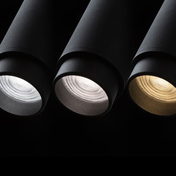 Dimbar tubformad spotlight för 3-fasskenor som har möjlighet att ändra spridningsvinkel mellan 10 - 60° med det så kallade Zoom-systemet. Man kan även ändra färgtemperatur på ljuset: 3000K, 4000K, 5000K genom en knapp på baksidan av spotlighten. Dimbar via TRIAC.