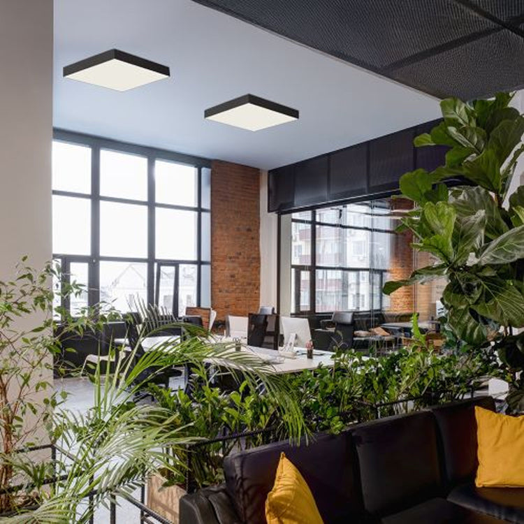 Taklampa med inbyggd LED och en minimalistisk ram. Armaturen har en inbyggd strömbrytare för att ändra färgtemperaturen på ljuset (3000K, 4000K, 6500K).