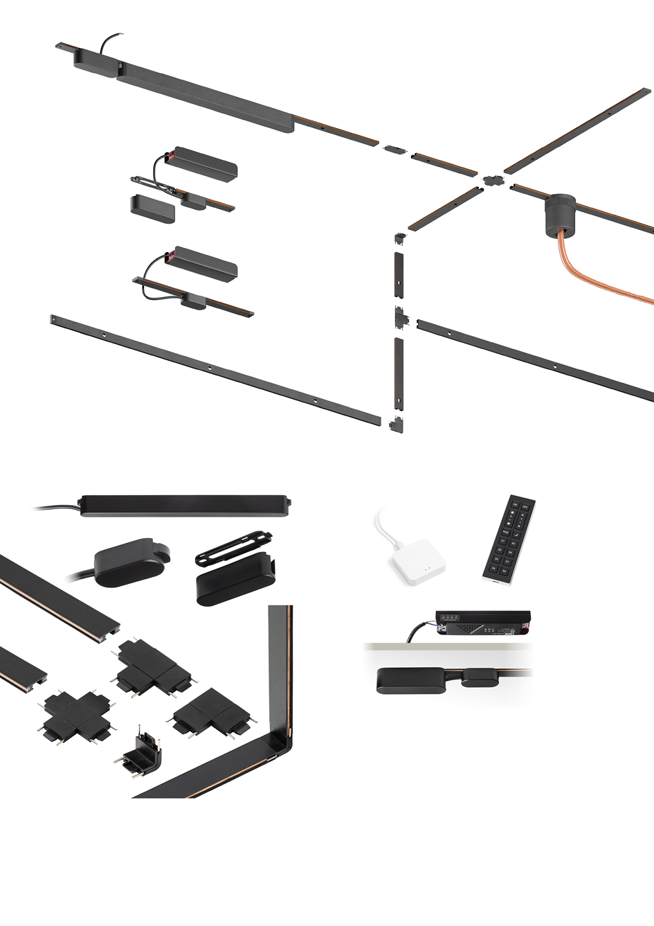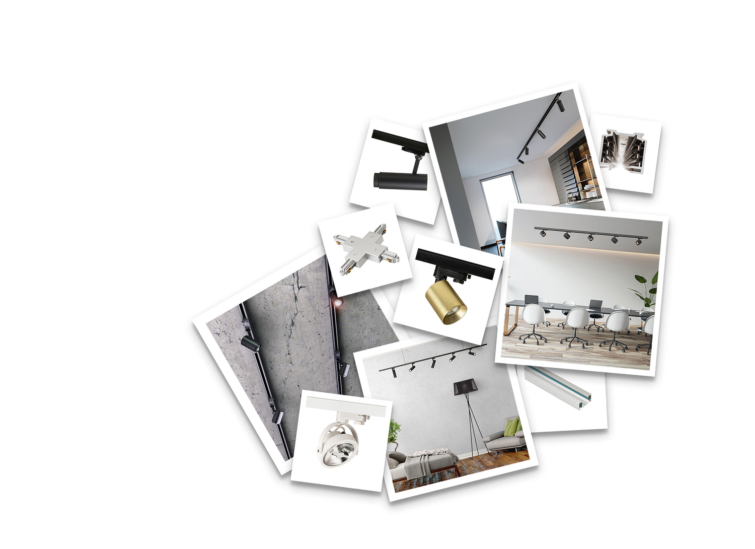 Universellt skensystem, perfekt för alla användningsområden. Idealiskt för bostäder och små kommersiella utrymmen.