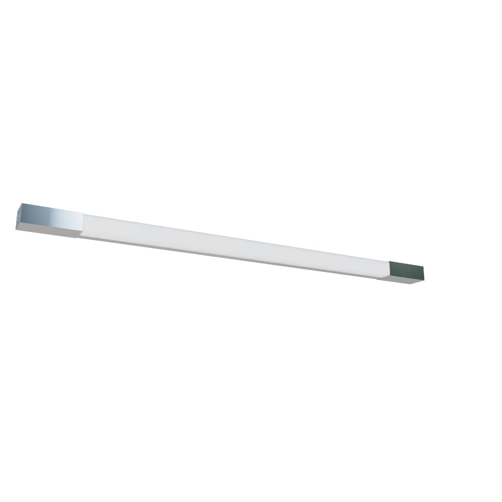 Linjär badrumslampa med inbyggd LED och detaljer i krom, lämplig ovanför en spegel.