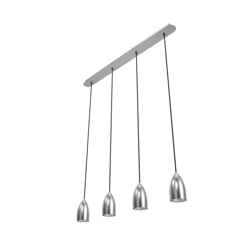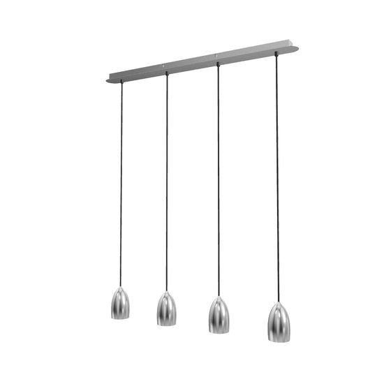 Pendel med skärm och takkåpa i krom eller matt nickel. Levereras med en svart textilkabel.