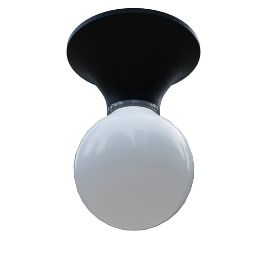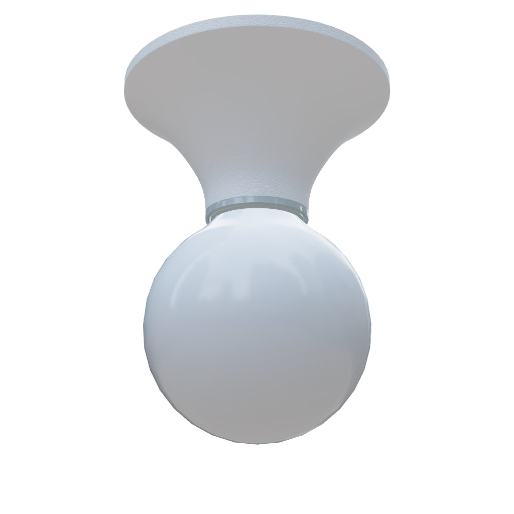 Takmonterad plastbas för dekorativa LED-ljuskällor med E27-fäste. Lämplig för våtutrymmen.