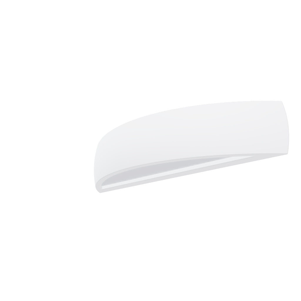 Dubbelriktad vägglampa av gips. Undersidan har en täckskiva av satinerat glas. För en R7s LED linjär ljuskälla med en längd på 78 mm. Lampan går att måla med vanlig väggfärg.