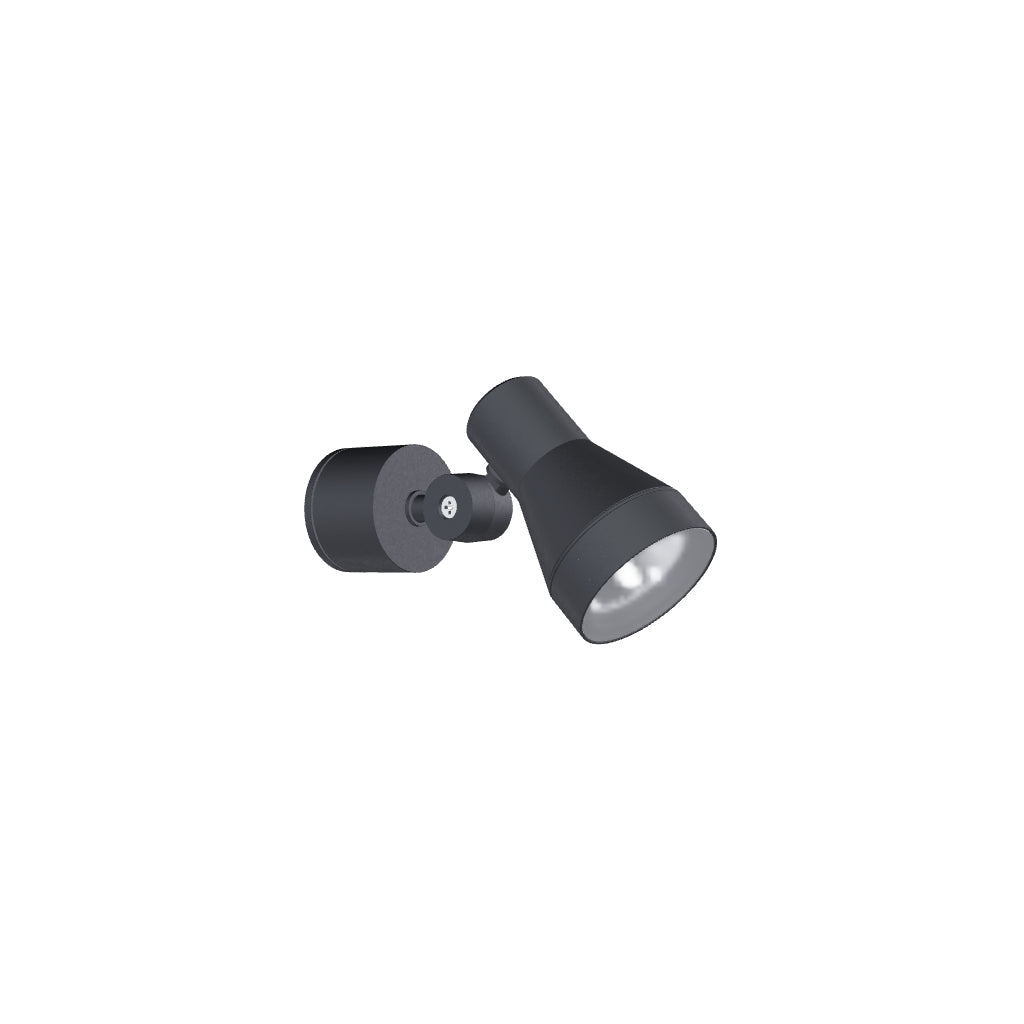 Spotlight för utomhusbruk. Lamphuvudet går att vinkla genom att lossa på en skruv i anslutning till basen.
