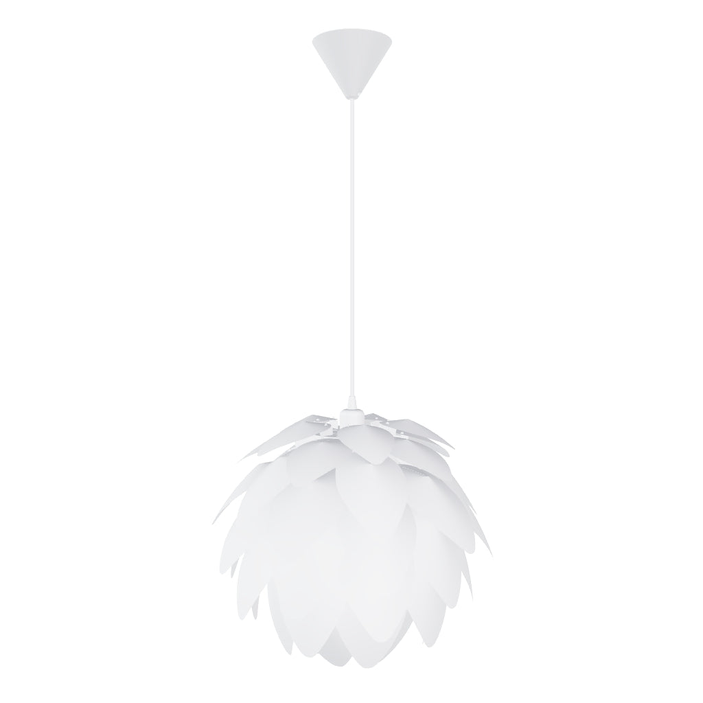 Dekorativ pendel med skärmblad av plast, tillgänglig i tre olika färger. Produkten levereras omonterad.