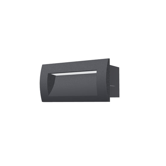 Infälld vägglampa med inbyggd LED. Lämplig som orienteringsbelysning för gångar, trappor eller terrasser. Får endast installeras som nedåtriktat ljus.