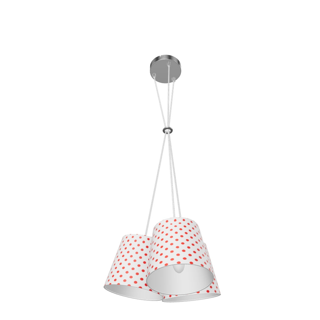 Pendel med en bas och tre textilskärmar för 3 st E14-ljuskällor.