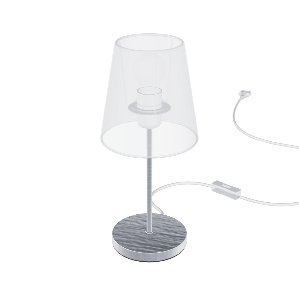 Bordlampsbas för skärmar med E27-fattning. Tillgänglig i polerad eller matt krom. Lämpliga skärmar: CONNY 15/15, CONNY 15/30, RON 15/20, TEMPO 15/15, TEMPO 15/30.