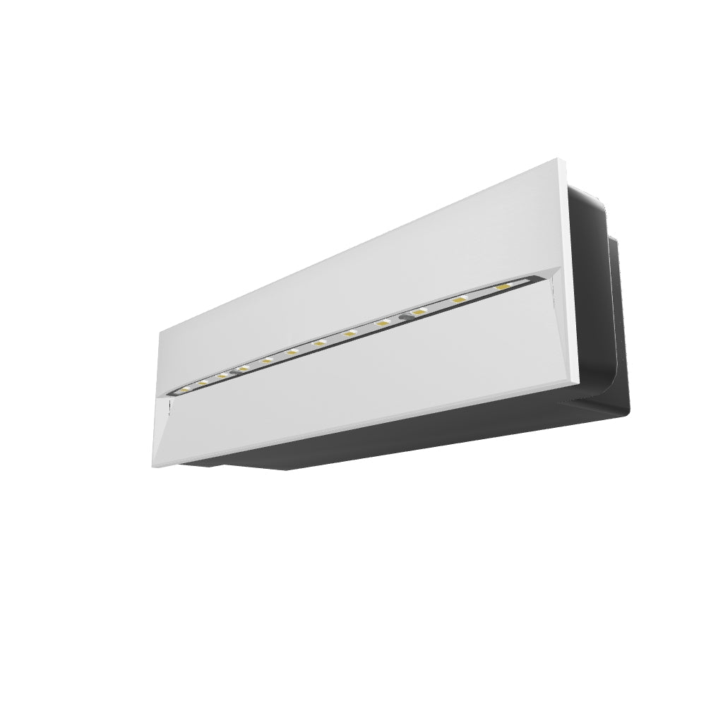Infälld LED-vägglampa för orienteringsbelysning av trottoarer, trappor eller terrasser. Lämplig för utomhus- och inomhusbruk. Installation endast med lampan riktad nedåt.