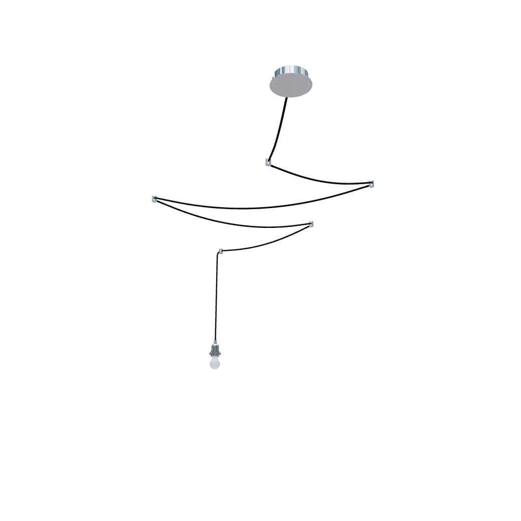 Flexibel lösning som går att komplettera med en dekorativ ljuskälla eller en lättare skärm. Fästes i antingen vägg eller tak med hjälp av fästen längst den svarta textilkabeln. Setet kan fås med antingen 4 st svarta eller förkromade fästen. Det går även att beställa extra fästen separat. Lämpliga skärmar: ARISTA, ASPRO, DOUBLE, JAKARANDA, RON.