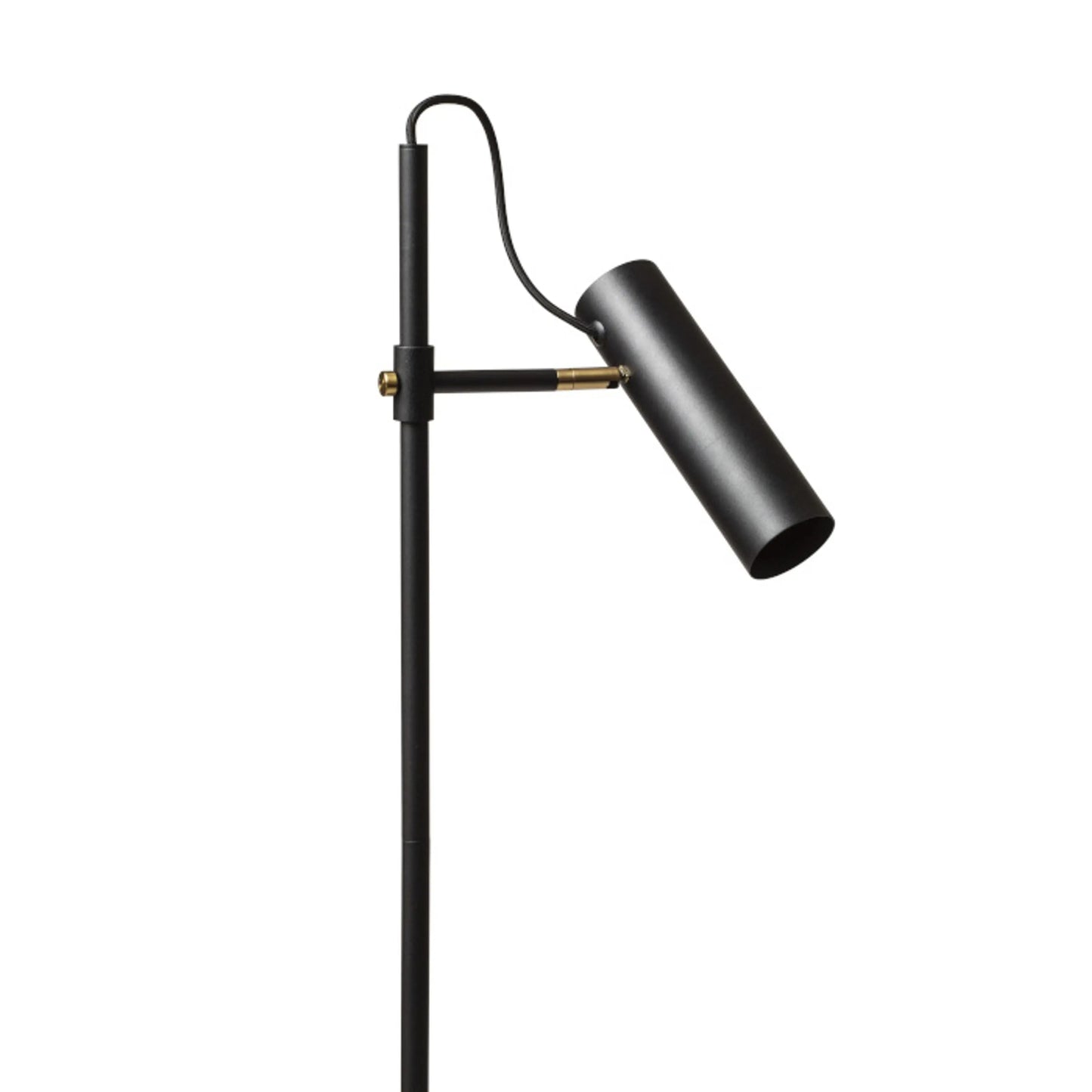 Elegant golvlampa med cylindriskt lamphuvud och GU10-sockel för LED-ljuskällor. Strömbrytaren sitter på baksidan av lamphuvudet.